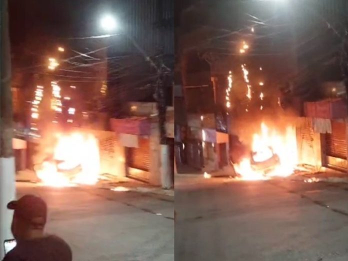 Um carro com cinco pessoas pegou fogo na noite de sábado (13), na cidade de Candeias, localizada na Região Metropolitana de Salvador, enquanto trafegava pela rua 21 de Abril.